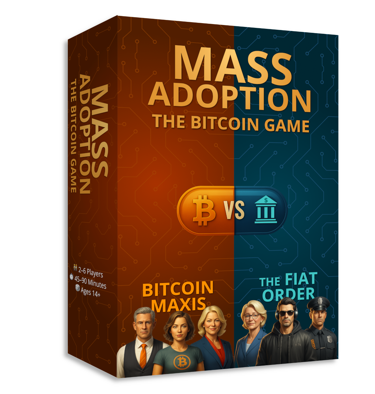 The battle for the future of money has begun. Choose your side, shape global events, keep your identity secret, and fight to decide whether Bitcoin rises—or gets buried by The Fiat Order in this semi-cooperative board game.